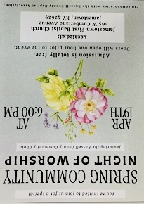Jamestown First Baptist Community Night of Worship 4/19 Posted Today At 12:35pm by Lisa Clark The event is on Sunday, April 19th at 6:00pmCT... Read All